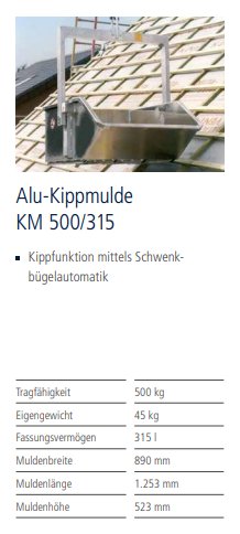 Böcker Kippmulden eignen sich für alle Arten von Schüttgütern und können bei der Sanierung von Flachdächern oder Wohnungen zum Einsatz kommen. Die Kippmulden aus Aluminium haben durch ihre leichte Bauweise ein geringes Eigengewicht und sind sehr effizent. Die Mulden sind mit einem speziellen Schwenkmechanismus ausgerüstet, wodurch die Körbe automatisch entleert werden und die Transportmulden so problemlos von einer Person betrieben werden können.