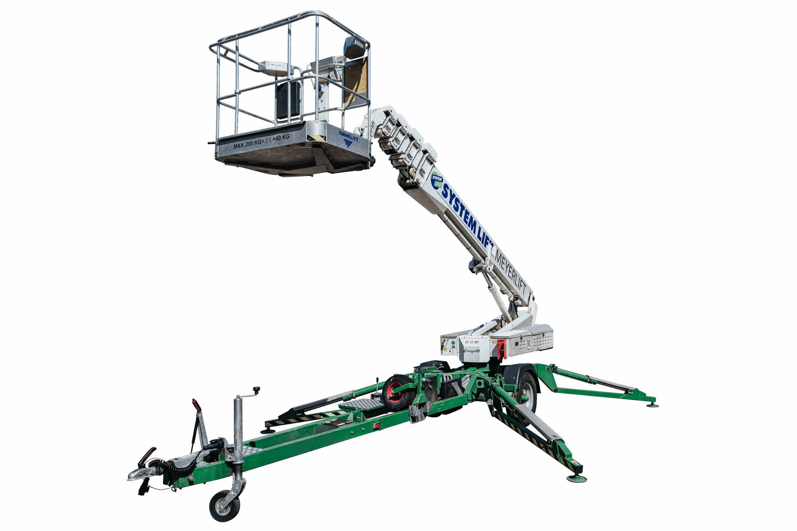 Die AB 120 mit Stützen gehört zur Premiumklasse der Anhänger-Arbeitsbühnen und überzeugt mit 21,2 m Arbeitshöheund 12,2 m seitlicher Reichweite. Der stabile Stahl-Teleskopausleger mit abgewinkeltem Korbarm ermöglicht präzises Arbeiten über Hindernisse hinweg, während die Proportionalsteuerung ein ruhiges, feinfühliges Anfahren jeder Position erlaubt.