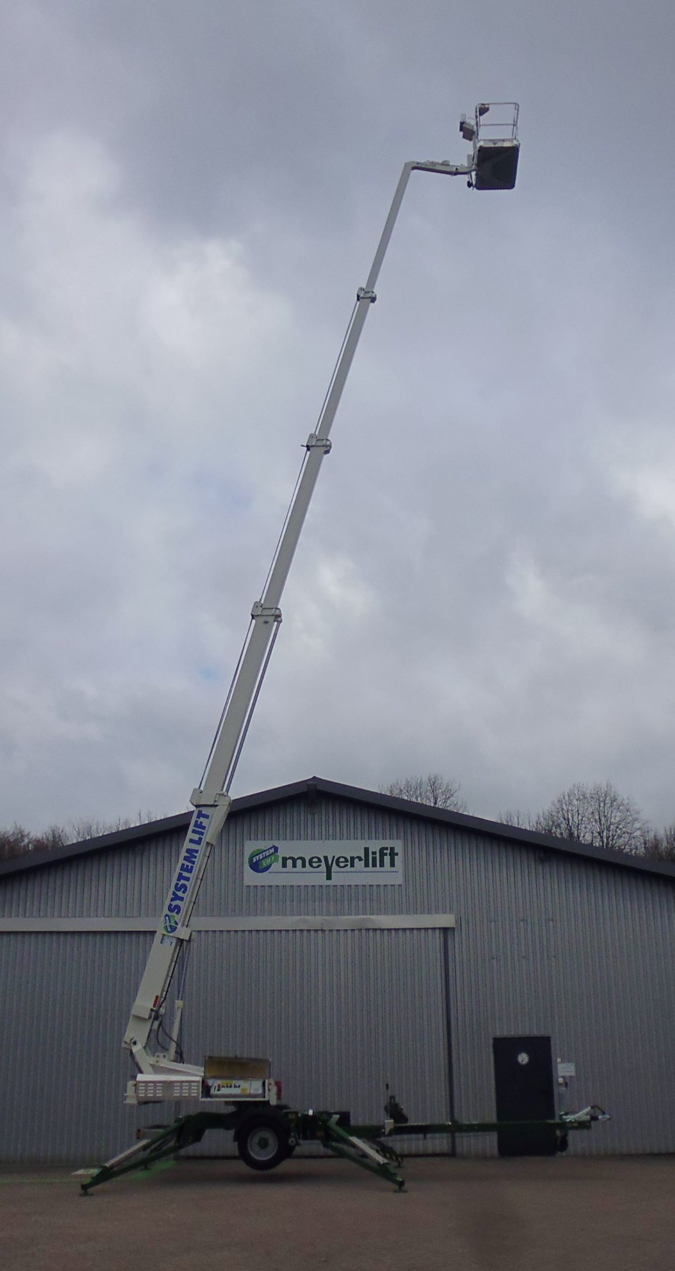 Reichweitenangaben ohne Gewähr, da lastabhängig, optimale Arbeitsbühne für niedrige und enge Zufahrten, Anhängerarbeitsbühne, die auch mit Mittelklasse PKW gezogen werden kann (mind. Anhängerlast Zugfahrzeug 2,5 t) / Führerscheinklasse BE (alt 3) erforderlich.