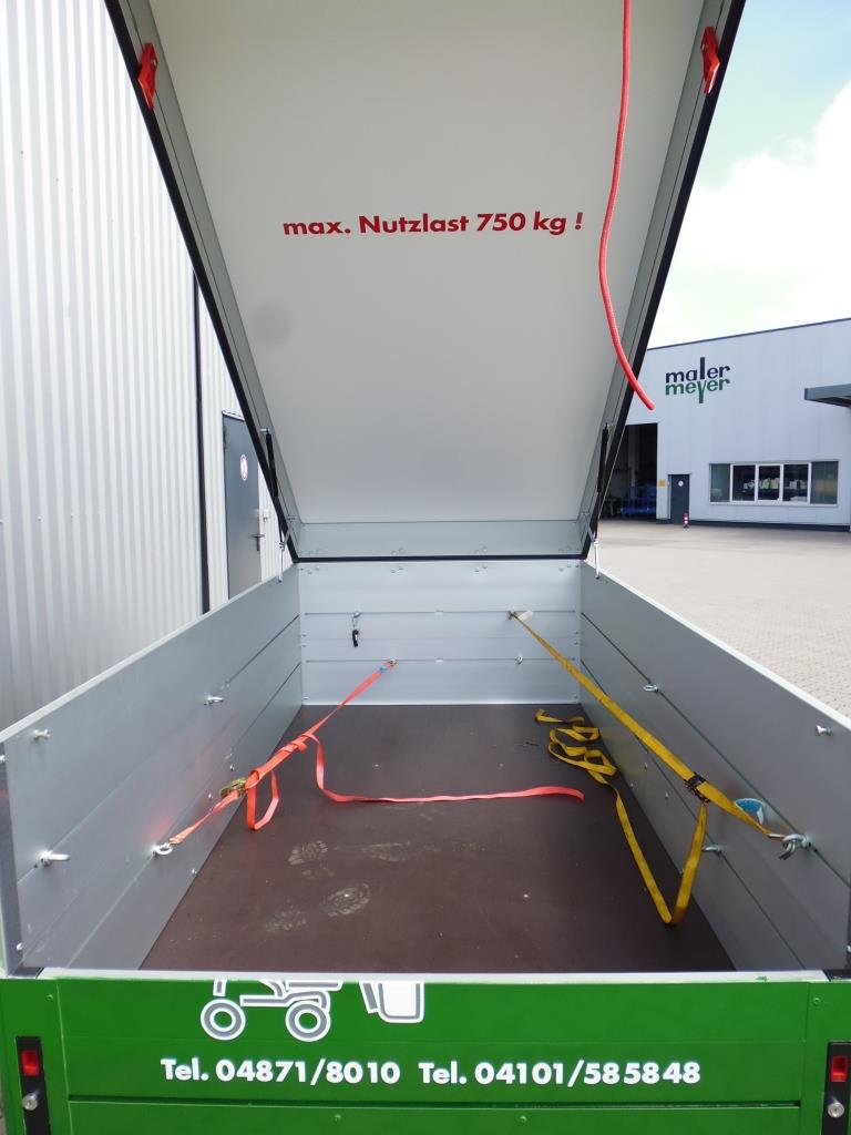 Bauart: geschlossener Kasten / Abmessungen Stauraum: L 2,50m B 1,25m H 0,85m
