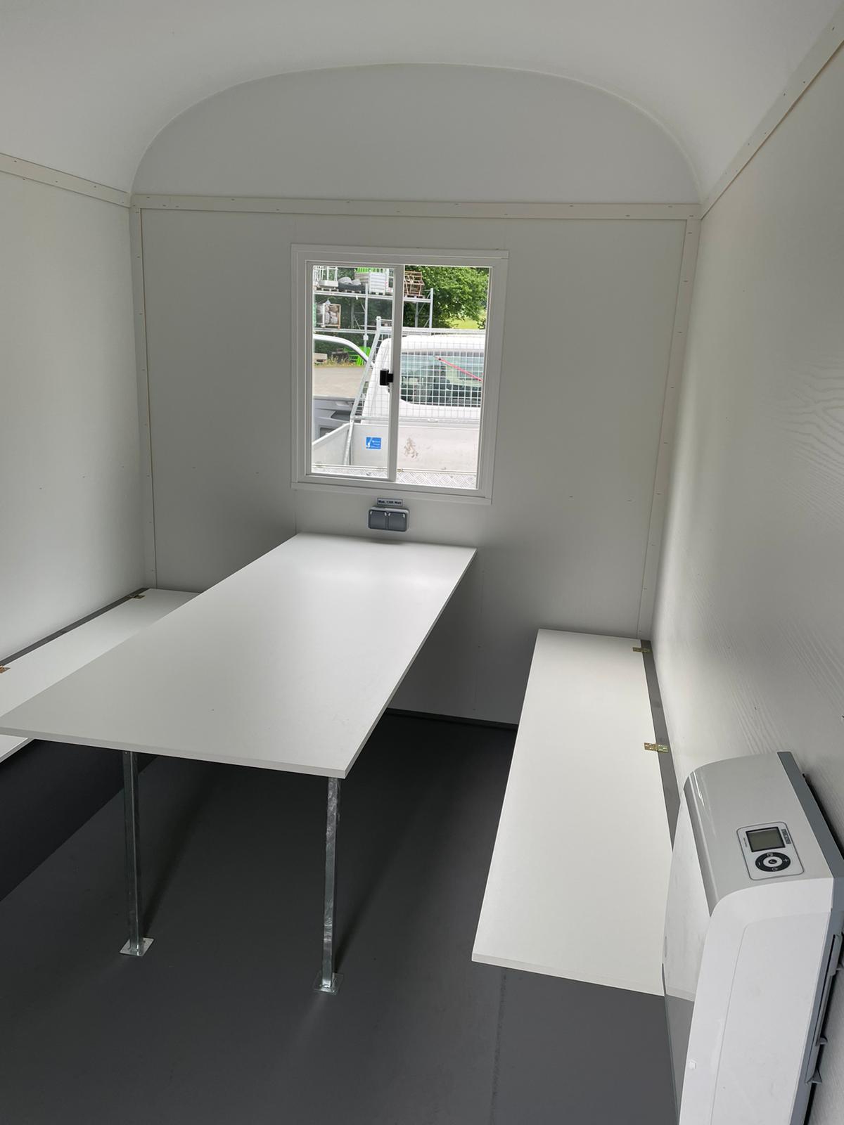 Hinweise: Komfortable Unterkunft, der Rasant 370 bietet ausreichend Platz für bis zu sechs Personen. Dank Rundumisolierung und einer 2000 W Elektroheizung, sowie zwei Fenstern ist er als Baustellenunterkunft sehr komfortabel.