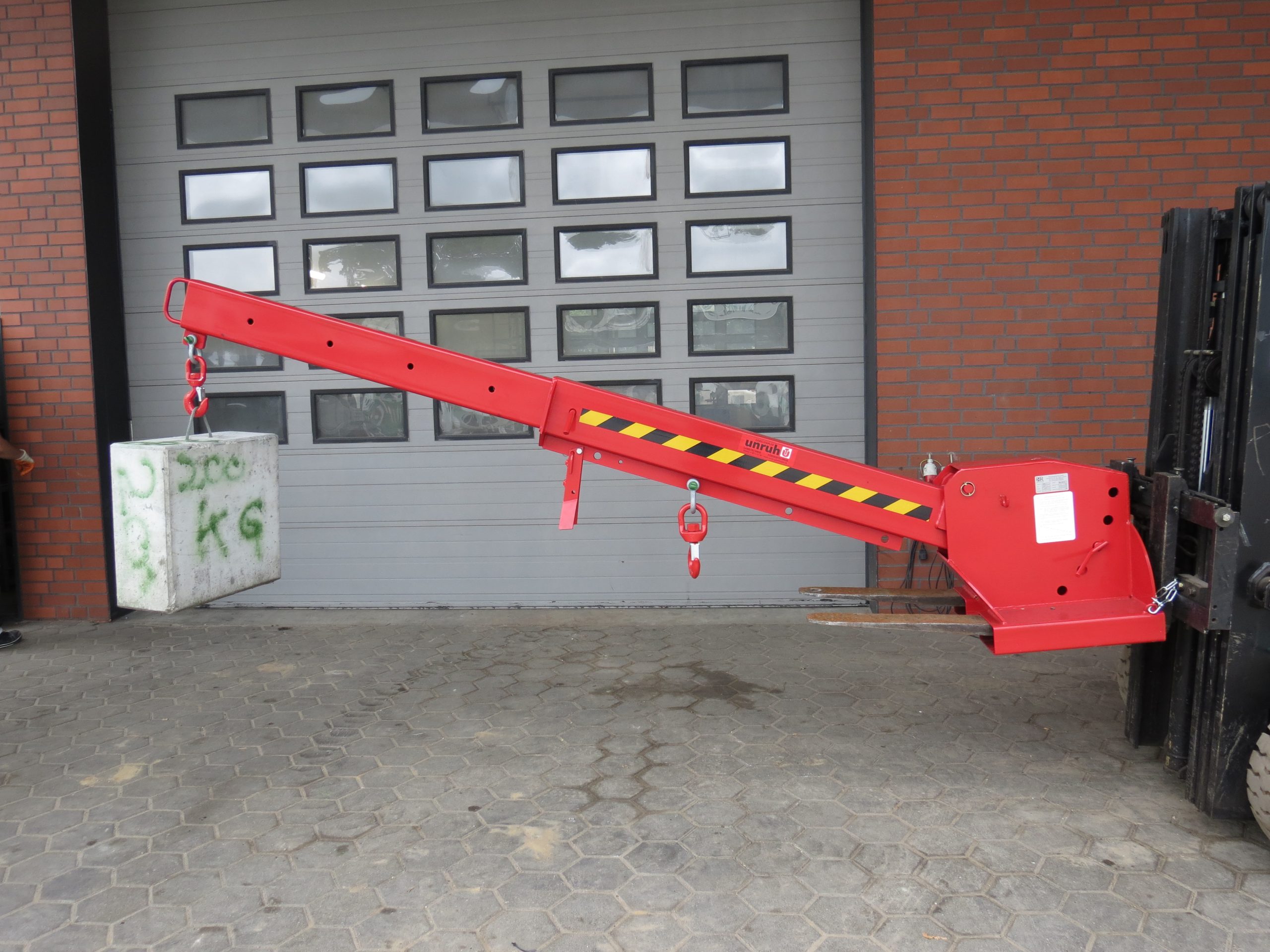 Der Kranarm (Teleskoparm) Typ RKT 5,0 ist das ideale Anbaugerät um die Reichweite Ihres Gabelstaplers zu vergrößern. Auch hochgelegene Stellen sind beim erfassen des Ladeguts mit dem Kranarm Typ RKT kein Problem mehr. Der innenliegende Teil kann 6-fach ausgezogen werden und an jeder Position mithilfe eines Steckbolzens gesichert werden. Komplett ausgezogen hat der Kranarm eine Gesamtlänge von 3670 mm, wobei das Grundgerät eine Länge von 2170 mm aufweist. Eine zusätzliche Kettensicherung verhindert ein Abrutschen von den Gabelzinken. Mit diesem Anbaugerät wird Ihr Gabelstapler innerhalb von Sekunden zum Kran.