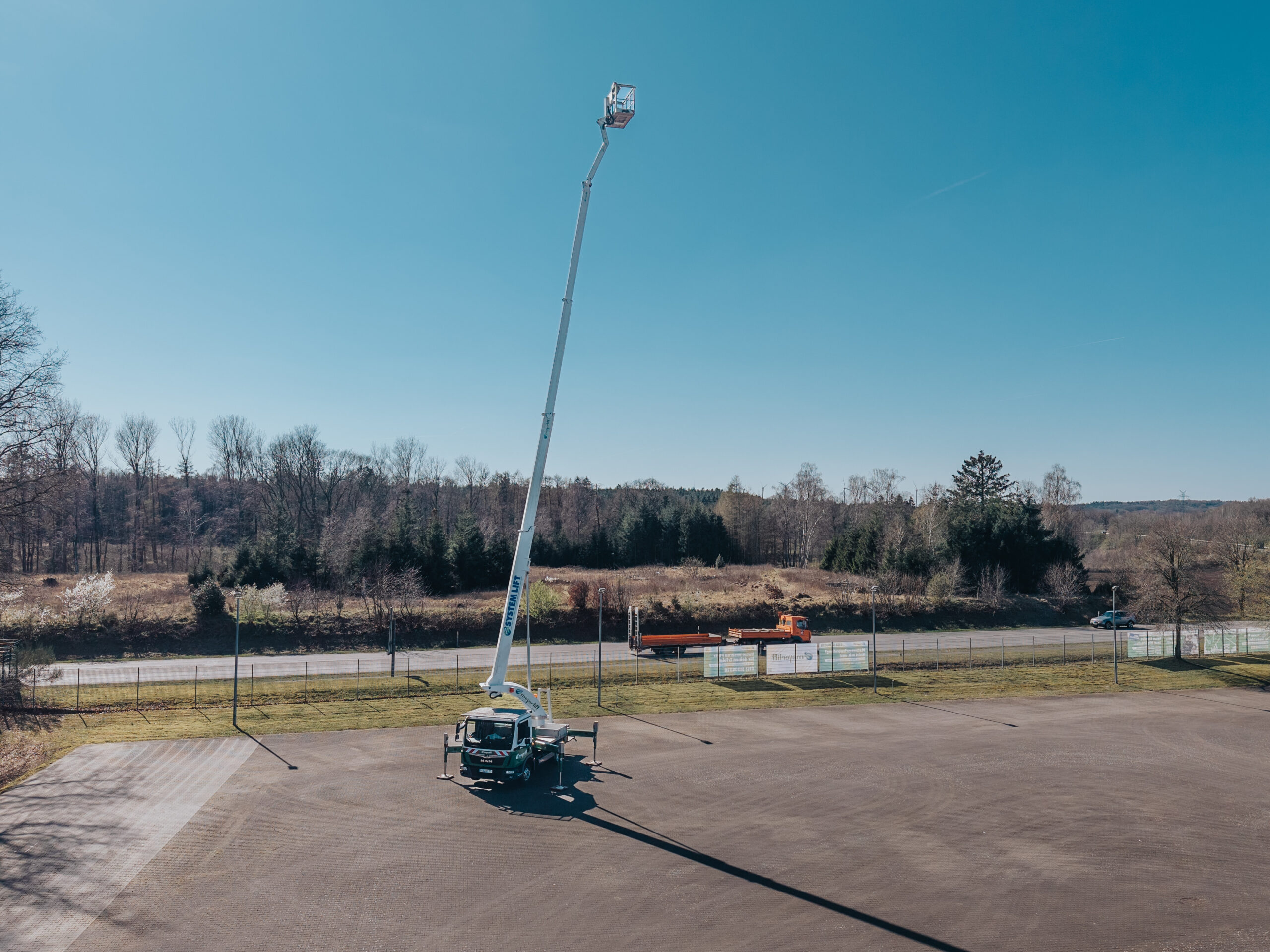 Max. seitl. Reichweite: 20,50 m (bei 100 kg Korblast)