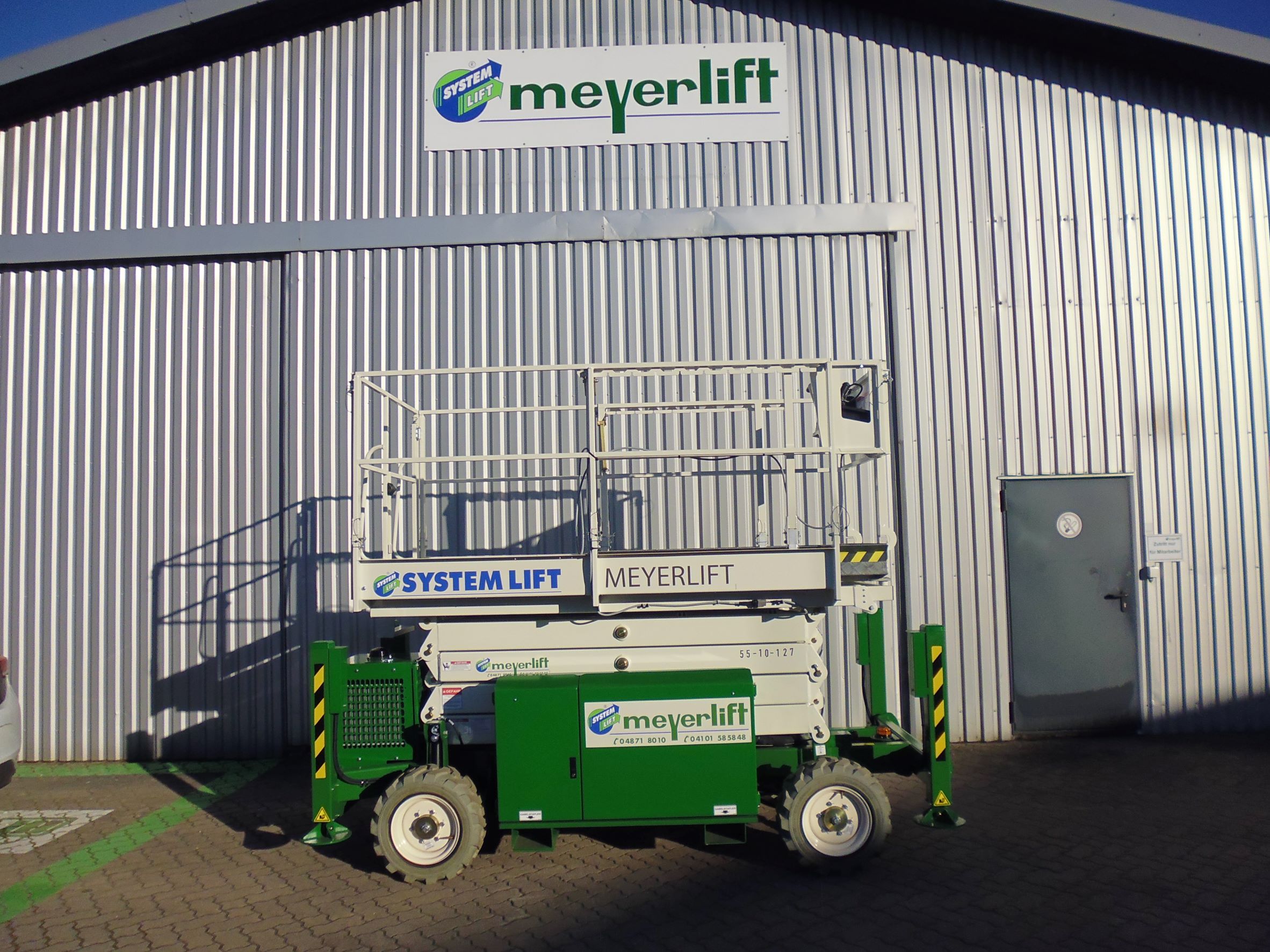 Allradantrieb, 4 hydraulische Abstützungen mit automatischer Nivellierung, Plattformausschub, Nicht-markierende Reifen, Proportionalsteuerung, Stromkabel zur Plattform zur nachtr. Ausrüstung mit Steckdose, Fahralarm, Absenkalarm, Ventil zum manuellen Absenken der Plattform, Gelbes Rundumlicht, Gelenkachsen, Betriebsstundenzähler, Zwei Anschlagpunkte für Sicherungsgeschirr, 2 Jahre Garantie auf Ersatzteile und Arbeiten, CE-Zulassung.