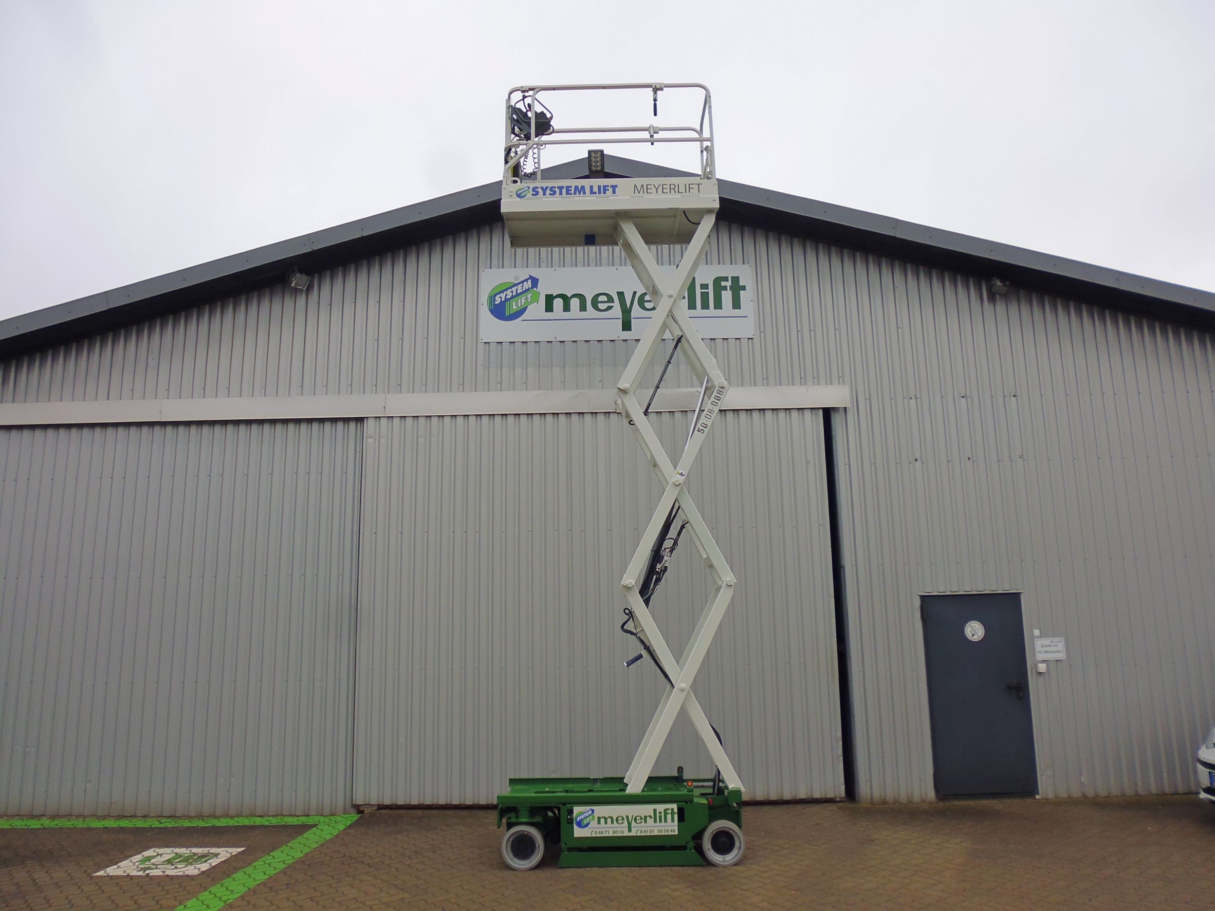 Die Scherenarbeitsbühne AICHI SV06ENS erreicht eine maximale Arbeitshöhe von 7,80 m und ist bei einer jeweiligen max. Tragfähigkeit von 230 kg für den Innen- und Außeneinsatz geeignet. Die Bühne hat einen Batterieantrieb mit integriertem Ladegerät und besitzt einen manuellen Plattformausschub von 0,90 m Länge, der max. mit 120 kg belastet werden darf. Serienmäßig bietet diese Scherenbühne nicht markierende helle Reifen sowie eine Proportionalsteuerung. Das Gesamtgewicht der Maschine beträgt 1.525 kg und Steigungen bis 25 % können überwunden werden.Mit einer Breite von nur 0,81 m und einer Länge von 1,87 m ist das Gerät sehr kompakt und daher auch bei engen Platzverhältnissen gut einsetzbar. Die Bühne lässt sich vom Arbeitskorb mit einem Joystick unkompliziert steuern, wobei zwischen einer Fahrgeschwindigkeit bis max. 4,8 km/h und einer Sicherheitsgeschwindigkeit von max. 0,8 km/h gewählt werden kann. Bei der Bodensteuerung kann über die Multifunktionsanzeige sowohl der Ladezustand der Batterie als auch die geleisteten Betriebsstunden abgelesen werden. Zusätzlich sind in der Korbsteuerung praktische Kontrollleuchten für den Batterieladezustand sowie diverse Warnleuchten angebracht. Alle diese Eigenschaften und Ausstattungsdetails ergeben zusammen eine Scherenarbeitsbühne, die dem Anwender breite Anwendungsmöglichkeiten, gute Bedienbarkeit und einen hohen Sicherheitsgrad bieten.