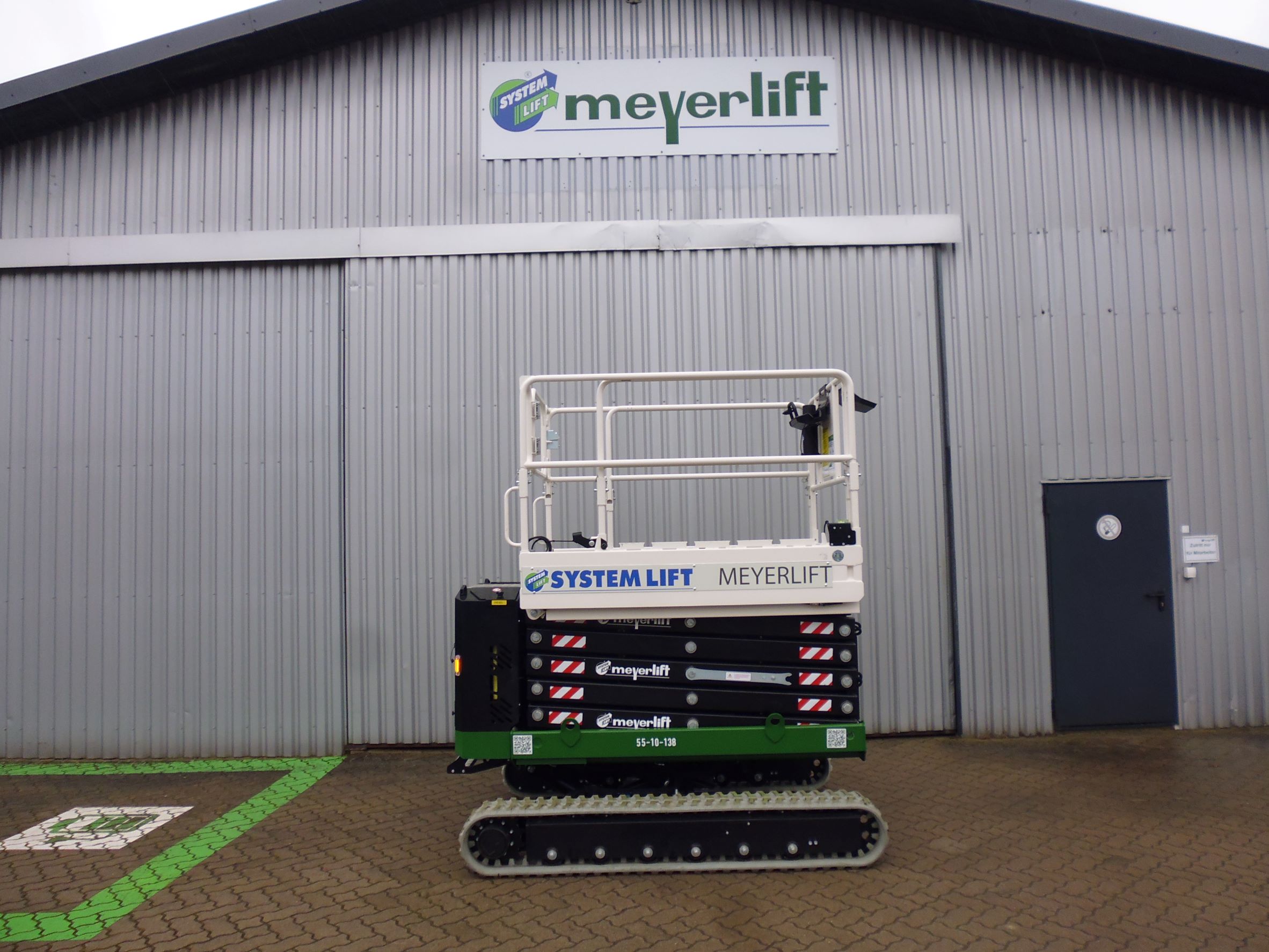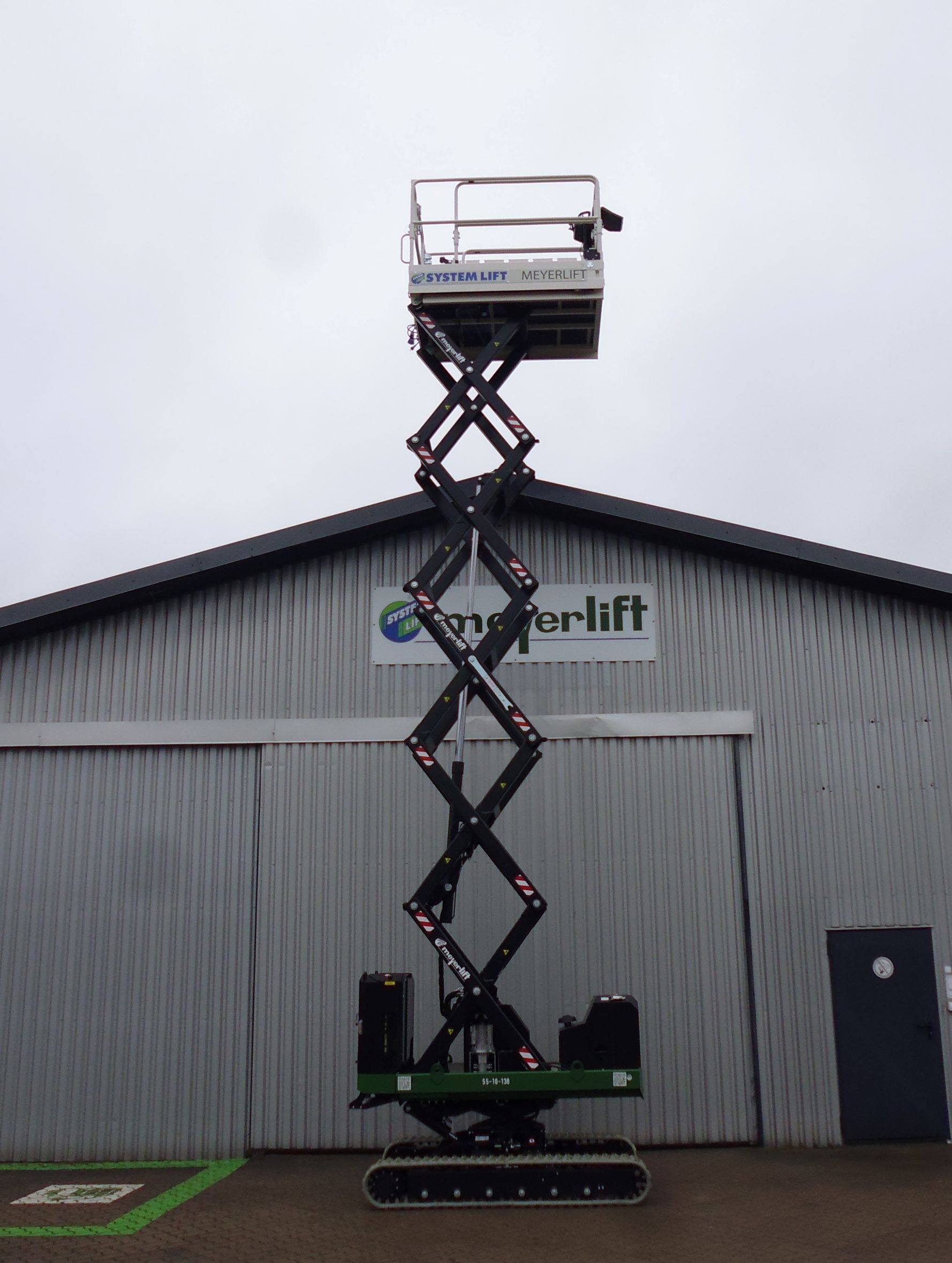 Transporthöhe mit eingeklapptem oder abgenommenem Geländer: 2,08 m (schmal) 1,75 m (normal), Elektropumpe 220V – 2,2 kW, Raupenketten, die keine Spur hinterlassen.