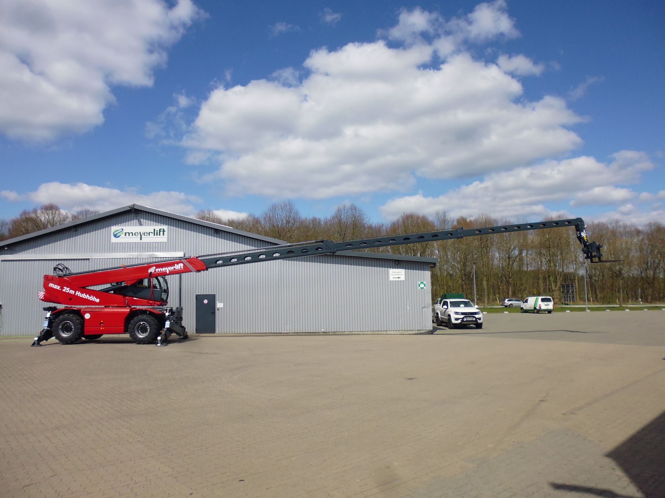 Manitou Schnellwechsler mit Anbaugeräteerkennung, Motor: Deutz TCD Stufe 4 75 PS, 3,6 Liter – 4 Zylinder, Dieselpartikelfilter, Antrieb: Bosch-Rexroth-Hydrostat, 2-stufig, 20 Km/h, Achsen / Bremsen: Dana-Spicer mit innenliegenden, nass laufenden Lamellenbremsen an Vorder- und Hinterachse, Feststellbremse elektrisch, Elektrische Anlage: 24 Volt, Tragkraft: 4.999 kg, Hubhöhe: 25,00 m, -Wartungsfreie Nasslamellenbremsen in Vorder- und Hinterachse, Komfortsitz mit Gewichtseinstellung und Armlehnen, Geräumige Überdruckkabine + Heizung, Bedienung über das übersichtliche Touch-Pad und Navigationsknopf, ROPS/FOPS Kabine mit optimaler Rundumsicht, 400° rotierend, Vorbereitung Korb, Seilwinde und Funkfernsteuerung, 12 V-Anschluss in Kabine, Automatische Nivellierung der Stützen, Klappstützen, Beleuchtung nach StVZO, FEM Gabelträger mit Zinken 1200mm