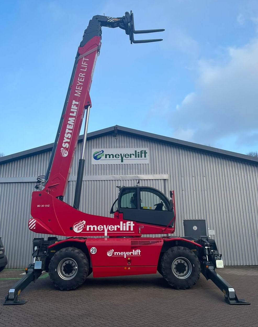 Der drehbare Teleskopstapler RTH 6.30 bietet ein robustes und leistungsstarkes Konzept. Er kann Lasten bis auf eine Höhe von 30 m anheben und ist mit Scherenstützen ausgestattet, die in allen Arbeitsphasen für eine erhöhte Standsicherheit bürgen. Die Scherenstützen erweisen sich auch bei beengten Platzverhältnissen als optimale Lösung. Denn selbst bei nur teilweiser Abstützung ist die Maschine so programmiert, dass allseitig mit dem bestmöglichen Lastdiagramm gearbeitet werden kann. Die vollständig ausgefahrenen Scherenstützen hingegen sorgen aufgrund der größeren Standfläche für eine optimale Maschinenleistung im gesamten 360-Grad-Bereich. Der Teleskopstapler ist mit etlichen Anbaugeräten kompatibel. Die automatische Anbaugeräteerkennung R.F.ID bewirkt die Aktivierung der jeweiligen Lastdiagramme, so dass den vielfältigen Anforderungen des Baugewerbes und der Industrie entsprochen werden kann.