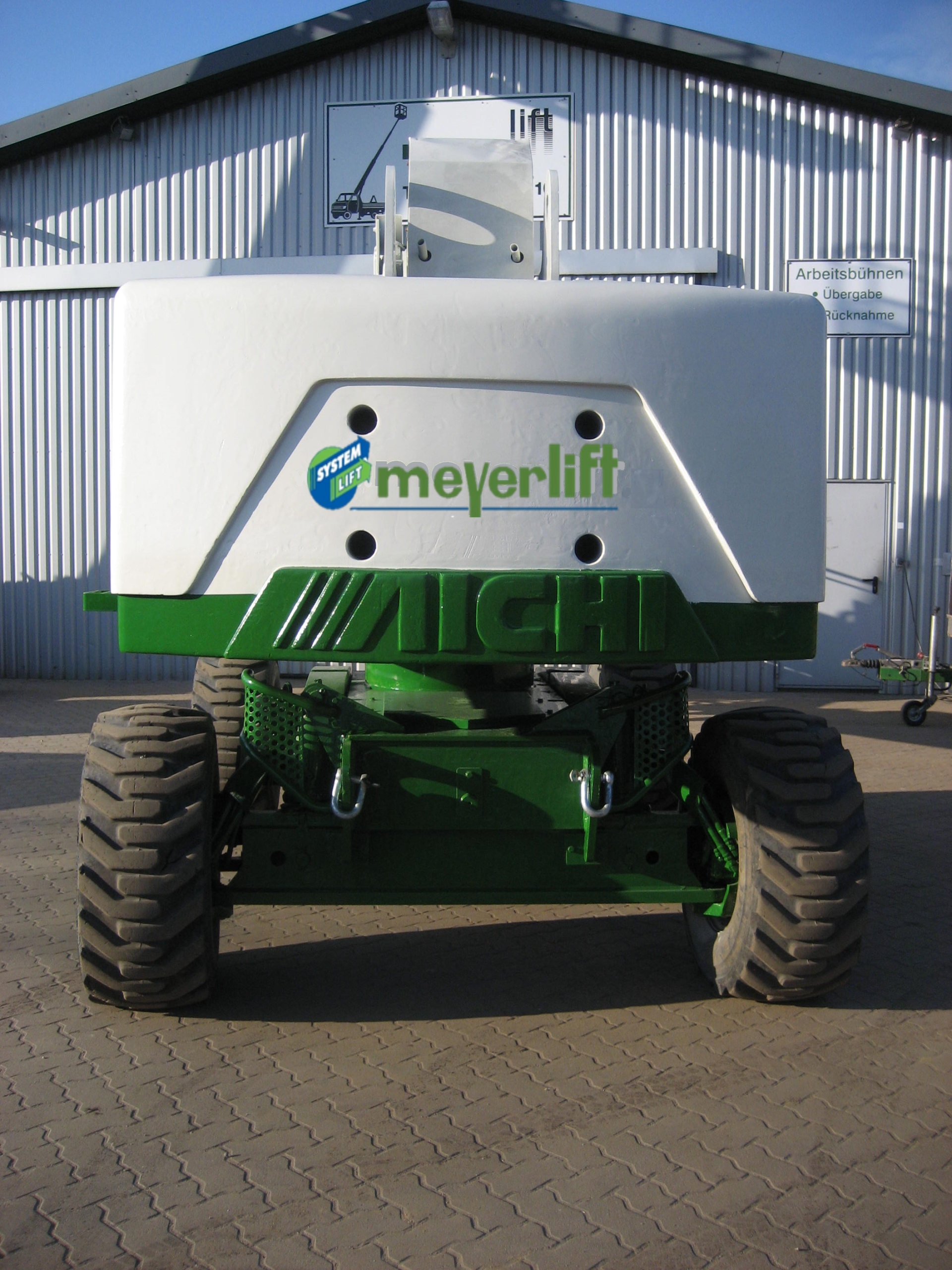 Allradantrieb und Pendellachse, daher gute Geländegängigkeit; sehr gute Steigfähigkeit (40-45 %) ; große seitliche Reichweite; aus voller Höhe verfahrbar.