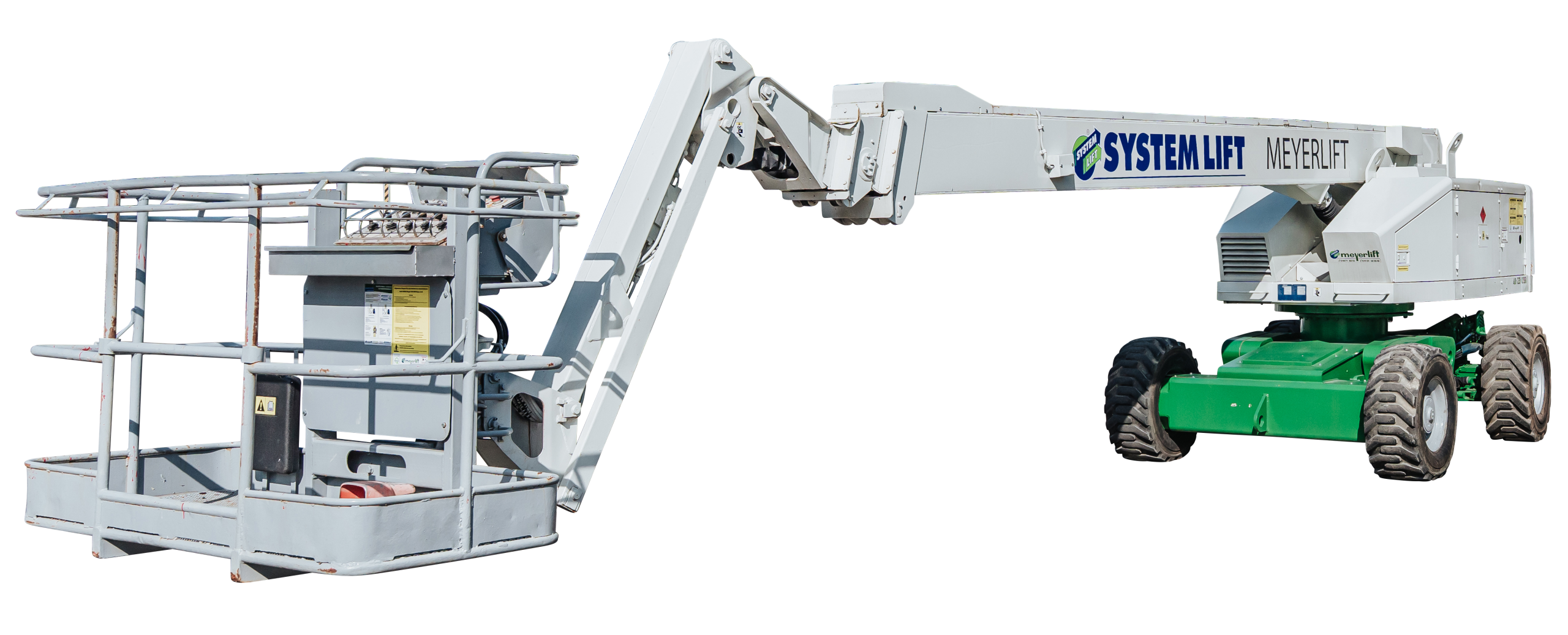 Allradantrieb und Pendellachse, daher gute Geländegängigkeit; sehr gute Steigfähigkeit (40-45 %); große seitliche Reichweite; aus voller Höhe verfahrbar.
