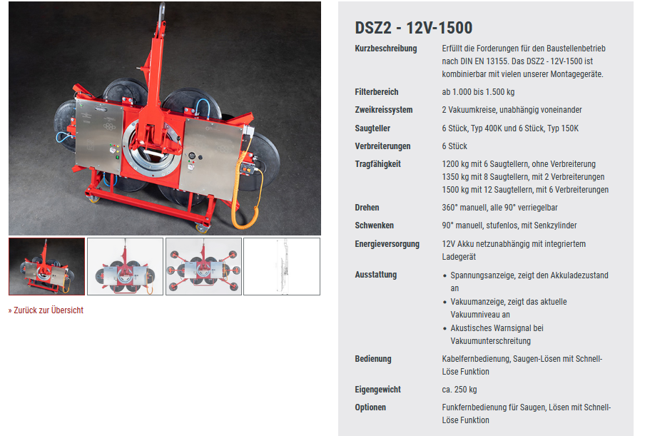 Mietanfrage für: VAKUUMLIFTER DSZ2-12V 1500 kg