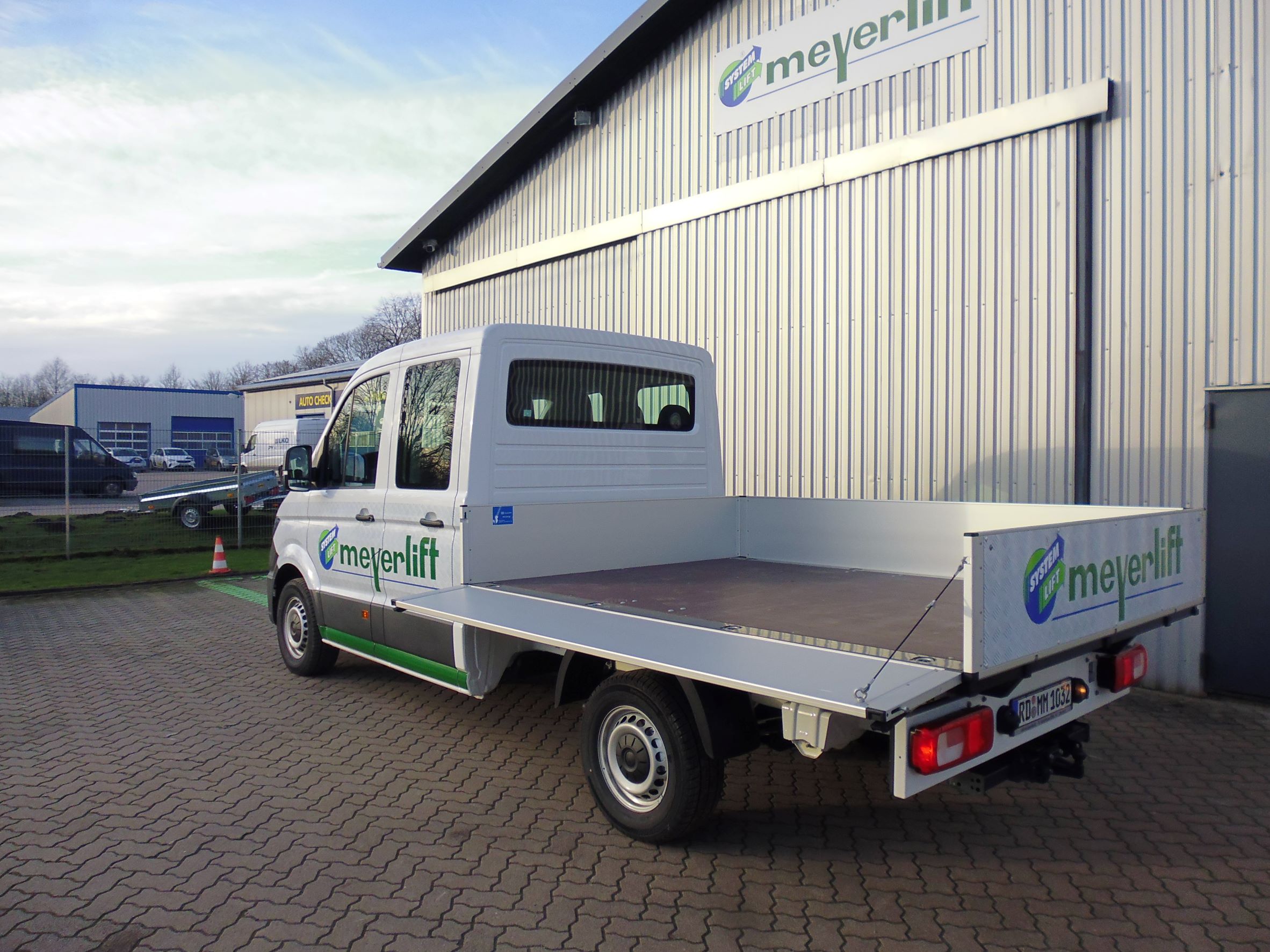 Der Crafter Pritschenwagen mit Abstandstempomat macht Material, Mannschaft und Maschinen mobil. Für ihren Transport bietet er eine ganze Ladung an Möglichkeiten. Mit einer Länge von 6.204 mm hat der Crafter Pritschenwagen mit mittellangem Radstand und Doppelkabine eine Ladefläche von bis zu 5,5 m². Außerdem transportiert er bis zu sechs Personen.