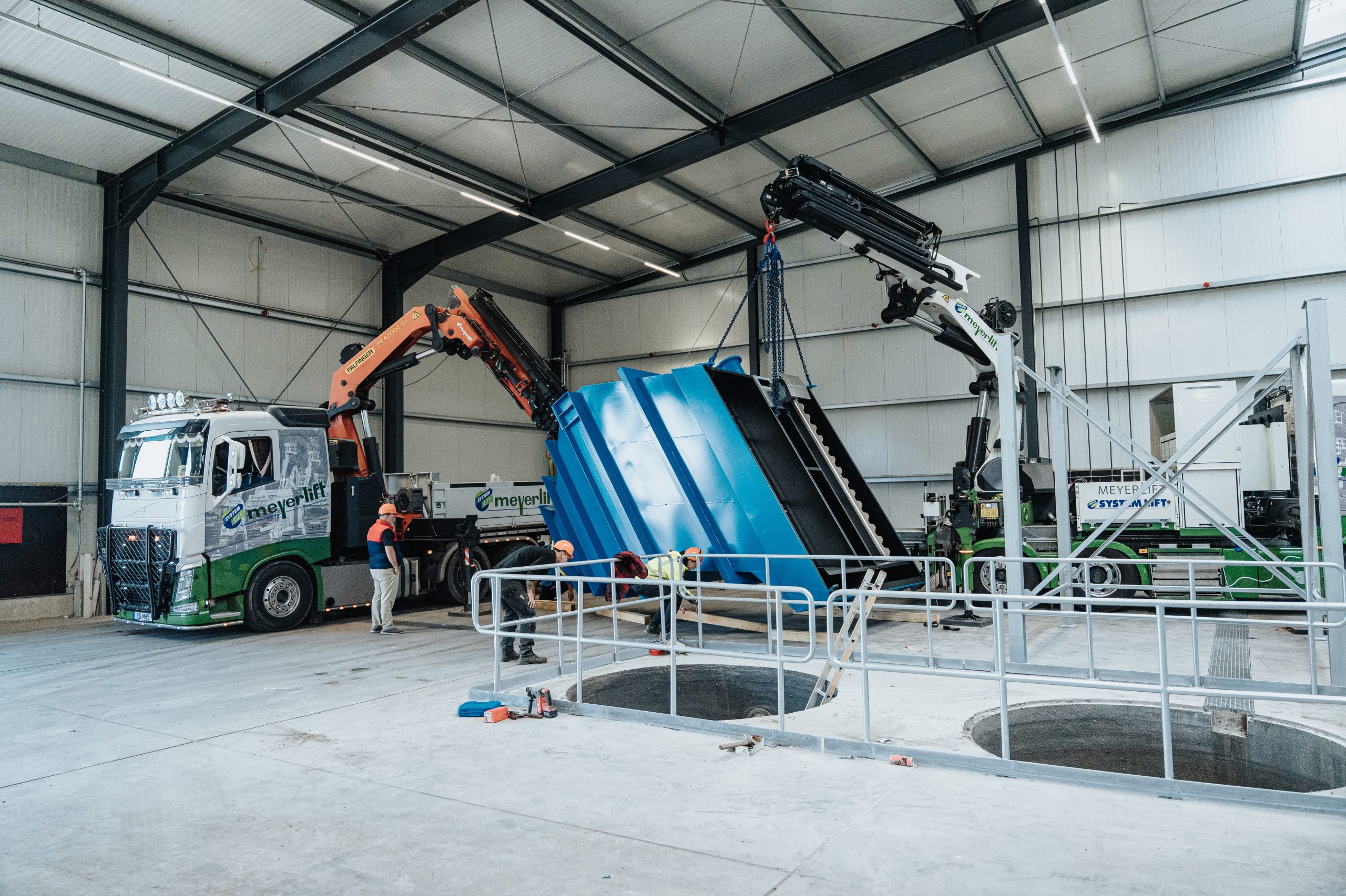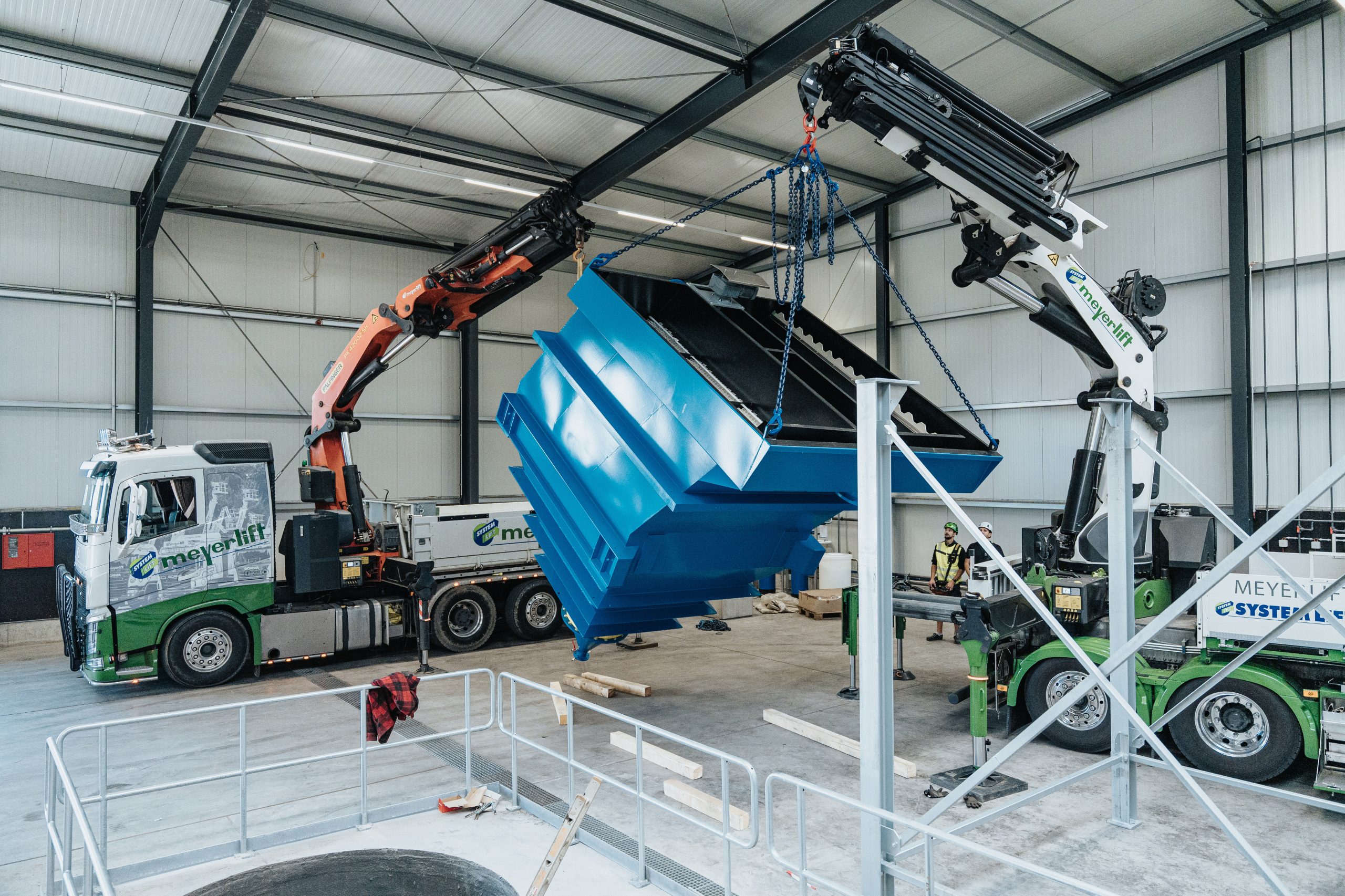 Für diesen Einsatz setzten wir gleich zwei meyerlift Ladekrane ein, die gemeinsam für Kraft, Präzision und Sicherheit sorgten: