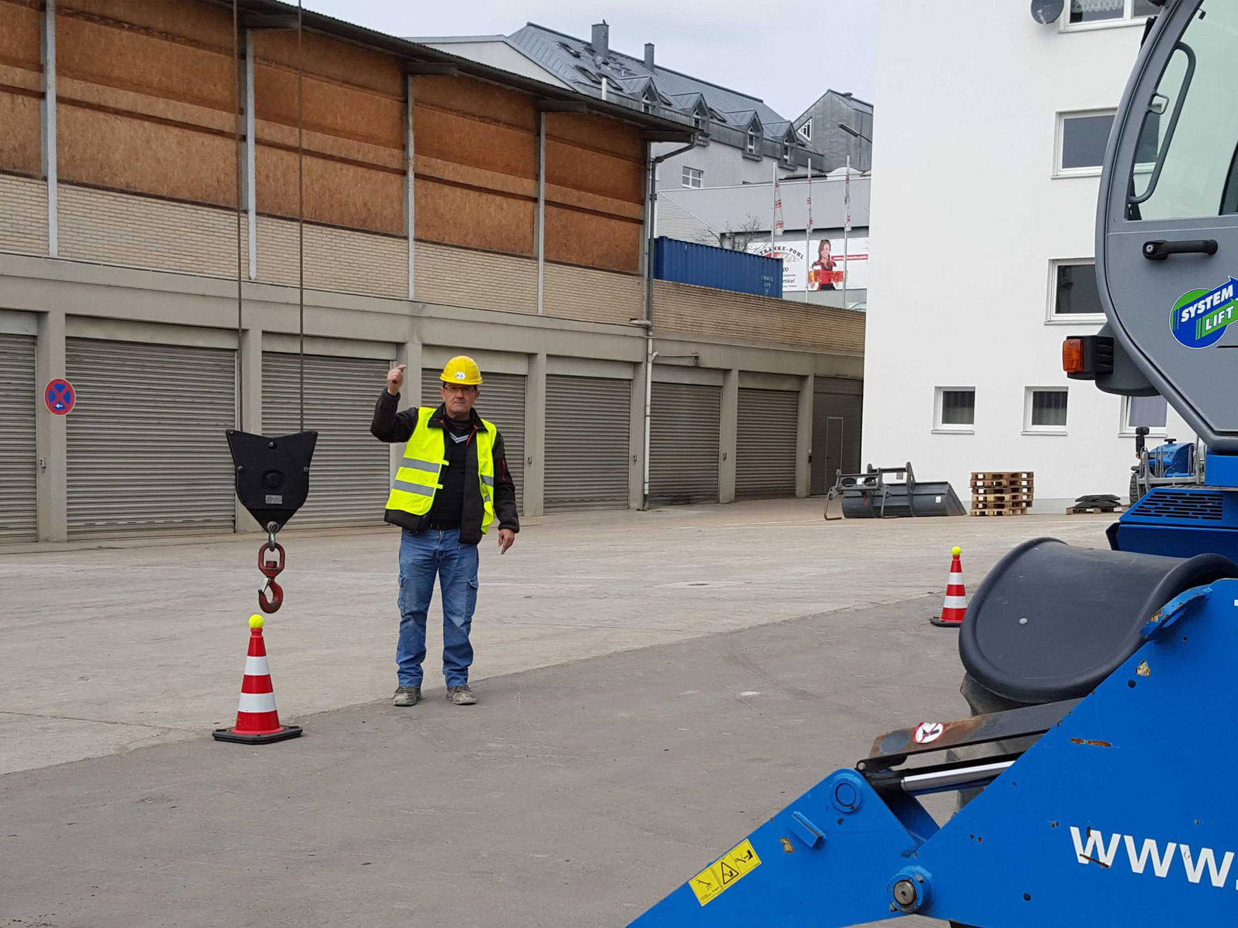 Unter einem „Anschläger“ versteht man eine/n Mitarbeiter/in an der Last einer Hebevorrichtung, welche/r das Anheben der Last vorbereitet, diese in geeigneter Weise sicher anschlägt und bis zum ordnungsgemäßen Absetzten überwacht. Neben der richtigen Wahl von Anschlagmitteln und deren richtiger Verwendung kommt es hierbei auf eine gute und sichere Verständigung mit dem Kranführer an. Entsprechende Handzeichen werden daher auch in der Schulung trainiert.